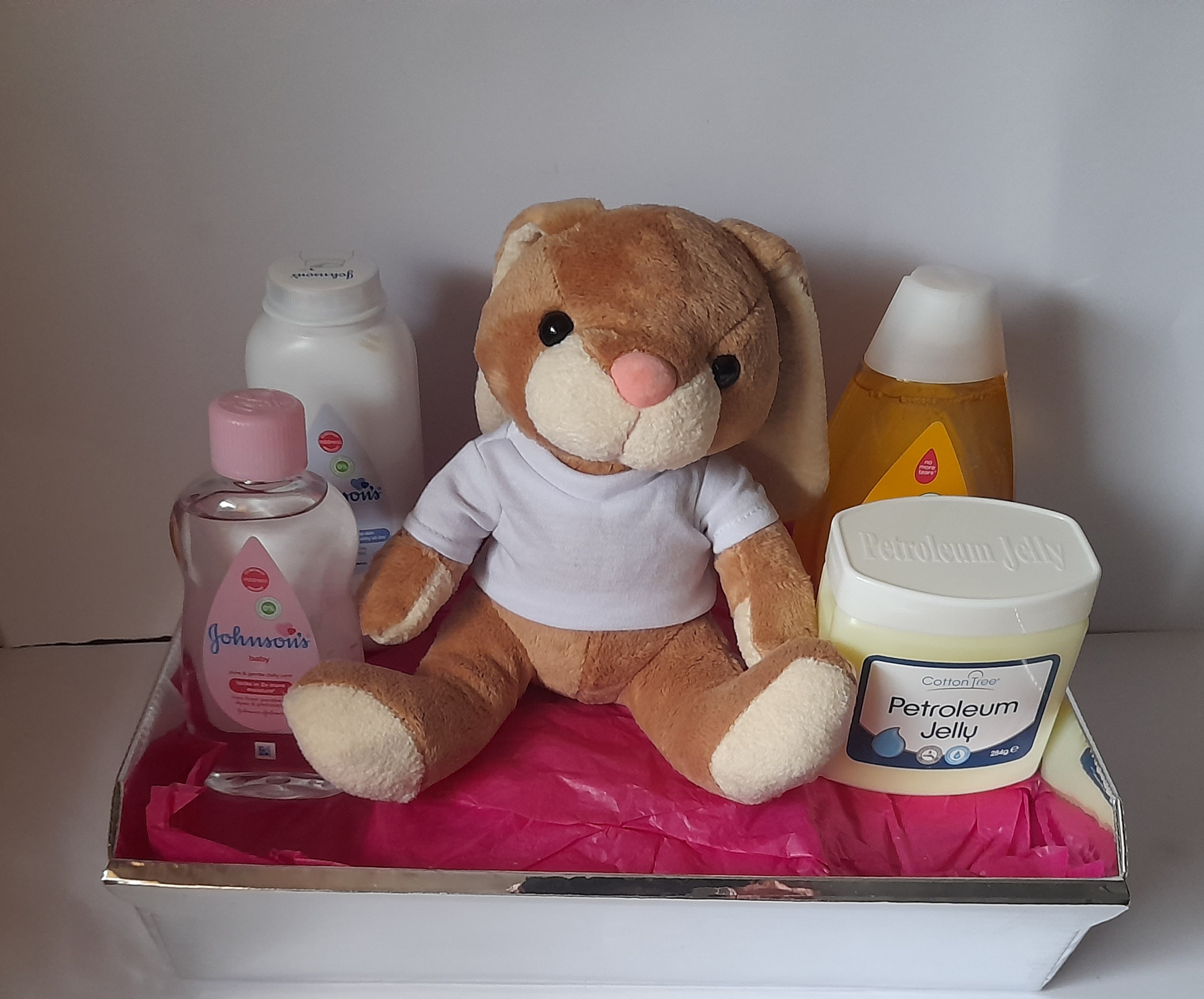 Hi, I am touching base to let you know I am selling customised baby gift hampers. The hampers include essential baby products such as baby powder, shampoo, lotion and petroleum jelly, customised bunny rabbit (190mm height) with a message of your choice, gift wrapped and boxed, a perfect personalised gift for expectant parents. The hampers are retailing from €25.99 for a hamper with 3 baby products and customised bunny rabbit, €28.99 with 4 baby products and customised bunny rabbit. (Customised message is written on the rabbits t-shirt). Delivery is free to Finglas, Cabra area. Give me a call or whats app me on 089 2138650 for further information.