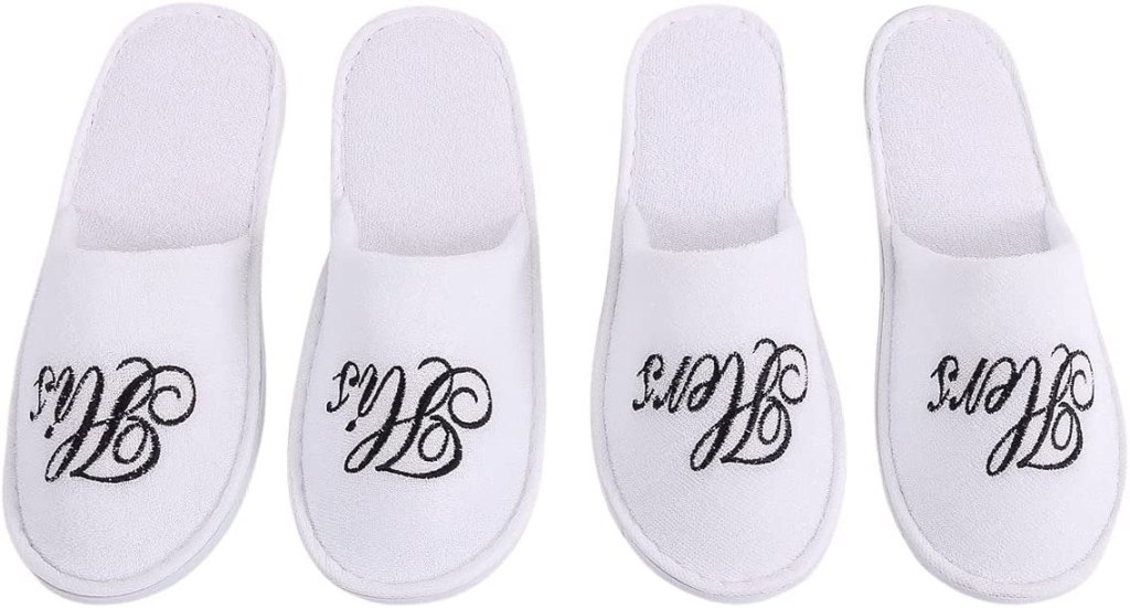 After the wedding day bride and groom can slip into his and hers slippers. A lovely keepsake for the special day.
